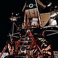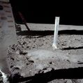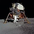 Edwin Aldrin descendant pour la 1re fois de son module lors d'Apollo 11 |