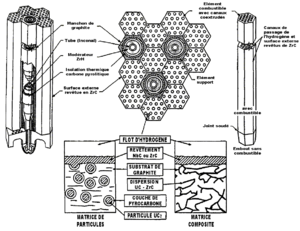 Le choix du substrat en graphite était justifié par ses caractéristiques neutroniques et sa résistance aux hautes températures. Cependant, l'hydrogène réagit à son contact et entraîne une corrosion importante du cœur, c'est pourquoi les barres sont revêtues d'une pellicule de 0, 05 mm de carbure de niobium ou de carbure de zirconium. Le revêtement est réalisé par dépôt chimique en phase vapeur, ou par insertion dans les canaux de tubes de niobium transformés en couche de carbure NbC par chauffage jusqu'à la température d'eutectique carbone+niobium.