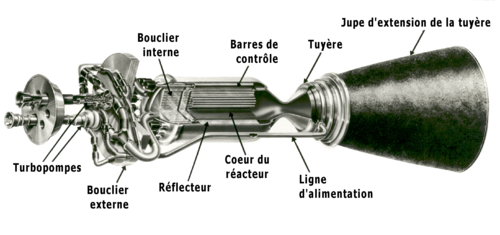 La technologie de propulsion étudiée consiste en l'éjection à grande vitesse d'hydrogène réchauffé par un réacteur nucléaire. En 1968 et 1969, un modèle expérimental d'une poussée de 250 à 350 kN fut essayé au sol.